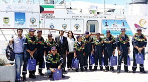 وكان في استقبال القارب في جزيرة (ايبيزا) التي تشكل جزءا من أرخبيل (جزر البليار) في البحر الأبيض المتوسط سفير دولة الكويت لدى اسبانيا الدكتور سليمان الحربي.