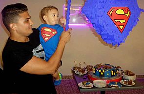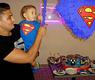 واحتفل الحضور بعيد ميلاد يوسف بطريقة مختلفة، حيث ارتدى الجميع ملابس مطبوع عليها الشخصية الكارتونية الشهيرة 'سوبر مان'.