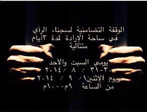 وكان قد دعا ناشطون كافة القوى السياسية والشبابية وأبناء الحراك الشعبي لإقامة وقفة تضامنية مع سجناء الرأي لمدة ساعة وعلى مدار ثلاث أيام متتالية إعتبارا من الساعة 9 من مساء اليوم السبت الموافق 30 أغسطس 2014.