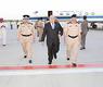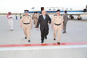 وكان في استقباله على ارض المطار وكيل وزارة الداخلية المساعد لشئون أمن المنافذ اللواء / أنور الياسين ومساعد مدير العلاقات العامه عقيد/ عماد الملا وعدد من كبار القيادات الأمنية.