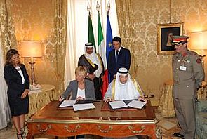 اجتمع معالي نائب رئيس مجلس الوزراء ووزير الدفاع الشيخ خالد الجراح الصباح مع معالي وزيرة الدفاع الايطالية السيدة روبيرتا بينوتي في مقر وزارة الدفاع الايطالية بالعاصمة روما اليوم وذلك على هامش الزيارة الرسمية التي يقوم بها سمو الشيخ جابر المبارك الحمد الصباح رئيس مجلس الوزراء.