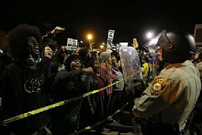 ويطالب المحتجون باعتقال ضابط الشرطة دارين ويلسون الذي قتل براون ومحاكمته.