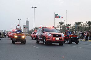 بتوجيهات ومتابعة مستمرة من قبل معالي وزير الدولة لشؤون مجلس الوزراء الشيخ محمد العبدالله المبارك الصباح اعلن مدير عام الإدارة العامة للإطفاء بالإنابة العميد خالد راكان المكراد عن نجاح الخطة الخاصة بتامين سلامة الارواح والممتلكات وسيرها على مايرام خلال الإحتفالات الوطنية التي تشهدها البلاد هذه الأيام مقدرا في ذلك دور المواطنين والمقيمين وتعاونهم مع رجال الإطفاء المتواجدين في جميع أماكن الإحتفالات ، وذكر العميد المكراد ان الإدارة العامة للإطفاء بالتعاون والتنسيق مع وزارة الداخلية والطوارئ الطبية وضعت نقاط ثابتة كقوة للتدخل السريع في المحافظات التالية:
