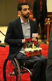 وأضاف: نحن كمدربين ندرب الغواصين على كيفية تحريك الزعانف، وكيفية استخدام المعدات، ولكن المهمة كان مختلفة تماماً مع الغواص فيصل الموسوي حيث تطلب الأمر مواكبة قدراته، لأنه لا يستطيع تحريك قدميه، مما جعلني أتدرب على الغوص باستخدام الأيدي فقط، وأقوم بتجربة كافة الطرق للتعرف على الطريقة المثلى في التدريب لتطبيقها معه.