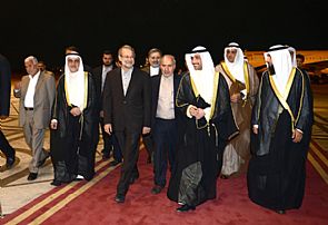 وكان في استقباله على أرض المطار رئيس مجلس الأمة مرزوق علي الغانم ورئيس بعثة الشرف مراقب مجلس الأمة النائب احمد لاري وأمين عام مجلس الأمة علام علي الكندري والأمين العام المساعد لشؤون الأعضاء والعلاقات العامة والإعلام سامي الشايع وكبار المسؤولين في الأمانة العامة.