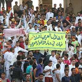 وقبل انطلاق المباراة ردد مشجعون أحوازيون شعارات خارج الملعب وفي مواقع التواصل الاجتماعي 'الأحواز أحوازنا.. وكل الخليج أعزازنا'، ترحيباً بالسعودية والخليج والفريق السعودي الذي يخوض أول مباراة له في إقليم الأحواز.
