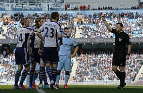 وطرد جاريث مكولي لاعب وست بروميتش بعد 90 ثانية فقط من البداية باستاد الاتحاد في مانشستر ووضع ويفلريد بوني فريقه سيتي في المقدمة.