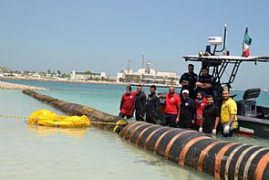 تمكن فريق الغوص الكويتي التابع المبرة التطوعية البيئية من انتشال أنبوب نفط جانح في ساحل الخيران بطول 70 مترا يحوي كميات كبيرة من النفط.
