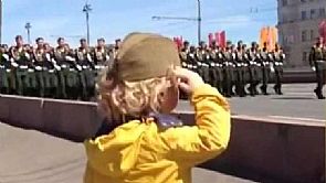 جذب طفل وهو يؤدي تحية عسكرية اهتمام الجنود الروس، خلال مشاركتهم في بروفة للعرض العسكري بمناسبة عيد النصر على النازية في موسكو، وما كان من الجنود إلا رد التحية له بالمثل.