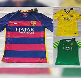 و سبق لبرشلونة أن ارتدى قميصاً غير مخطط في موسم 2008-2009 حيث كان مقسوماً إلى نصفين تحمل اللونين الأزرق والأحمر وقد كان الموسم الخيالي بقيادة بيب جوارديولا و الذي فاز فيه الفريق بالسداسية العظيمة ، و لكنها المرة الأولى الآن التي نرى فيها القميص بالخطوط العرضية.