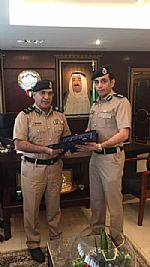 استقبل وكيل وزارة الداخلية المساعد لشئون المؤسسات الإصلاحية وتنفيذ الاحكام اللواء/ خالد الديين في مكتبه المقدم/ بشار فلاح الشباك من مرتبات قطاع المؤسسات الإصلاحية وتنفيذ الاحكام (إدارة التنفيذ الجنائي) والذي أهدى اللواء الديين نسخة من رسالة الدكتوراه الحاصل عليها من جامعة عين شمس حول (القانون التجاري والمدني).