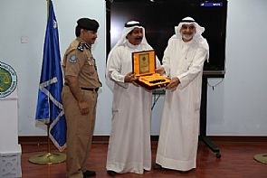 وفي الختام قام وكيل وزارة الداخلية المساعد لشئون الأمن الجنائي اللواء/ عبدالحميد العوضي بتقديم درع تذكاري إلى اللواء/ الدوسري بهذه المناسبة .. كما تم تبادل الدروع والتقاط الصور التذكارية.