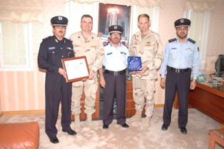 ضمن الجهود التي تبذلها الإدارة العامة للإطفاء أستقبل نائب مدير عام الإدارة العامة للإطفاء لشئون المكافحة بالإدارة العامة للإطفاء العميد / يوسف الأنصاري في مكتبه قائد القوات البحرية الأمريكية بمناسبة الانتهاء من التمارين العملية الوهمية المشتركة بين الإدارة العامة للإطفاء والقوات البحرية الأمريكية وقدم خلال هذه المناسبة قائد القوات الأمريكية للعميد / يوسف الأنصاري ميدالية وشهادة تقدير وشكر قائد القوات البحرية الإدارة العامة للإطفاء لما تقدمه من جهود لتذليل الصعوبات والعوائق أثناء تأدية واجبها.