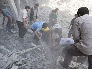 ونقلت وكالة رويترز عن عمال إغاثة قولهم إن خمسين جثة على الأقل انتشلت من مبان سوّيت بالأرض، مشيرين إلى أنهم يعتقدون أن جثثا أخرى لا تزال تحت أنقاض، بينما نقل العشرات من المصابين لمستشفيات ميدانية وأغلبهم يعاني إصابات خطيرة.