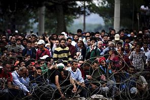 احتشد آلاف اللاجئين السوريين على حدود اليونان مع مقدونيا بعد إعلان الأخيرة حالة الطوارئ وإغلاق حدودها أمام تدفقهم.
