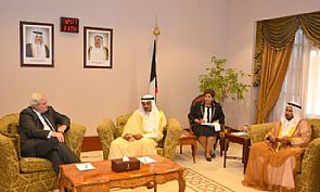 اجتمع النائب الاول لرئيس مجلس الوزراء ووزير الخارجية الشيخ صباح خالد الحمد الصباح اليوم مع مساعد الأمين العام للأمم المتحدة للشؤون الانسانية ومنسق شؤون الإغاثة في حالات الطوارئ ستيفن أوبراين بمناسبة زيارته للبلاد للمشاركة في أعمال الاجتماع الخامس لكبار المانحين لدعم الوضع الانساني في سوريا الذي تستضيفه دولة الكويت غدا.