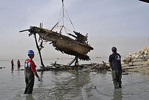 وقال رئيس الفريق وليد الفاضل لوكالة الانباء الكويتية (كونا) اليوم ان الفريق تمكن من رفع قاربين بوزن ثلاثة أطنان وشباك صيد مهملة ومخلفات أخرى تؤثر بشكل مباشر على البيئة البحرية ومياه جون الكويت.