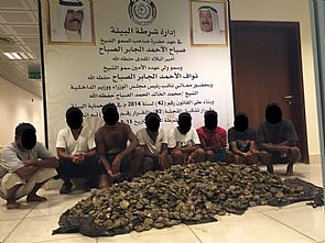 تمكن رجال ادارة شرطة البيئة التابعة لقطاع الأمن العام من القاء القبض على (8) وافدين من الجنسيات الاسيوية يقومون بجمع المحار عن طريق الغوص.