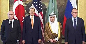 انتهى اجتماع فيينا الرباعي حول سوريا كما سابقه من الاجتماعات، بنتيجة هي عدم الاتفاق على موقف مشترك بشأن مصير الرئيس السوري بشار الاسد، بحسب وزير الخارجية السعودي عادل الجبير، الذي قال إن بلاده وروسيا وأميركا وتركيا اتفقت على مواصلة المشاورات. وكان احد قصور فيينا استضاف لقاءات جانبية لوزراء خارجية الدول الاربع، وتوج بالاجتماع الرباعي، الذي لم يشارك فيه وزير الخارجية الاردني ناصر جودة رغم وجوده هناك. وكان جودة التقى نظيره الروسي سيرغي لافروف الذي اعلن عن تنسيق عسكري بين بلاده والاردن في سوريا. وسبق اجتماعات فيينا اتصال هاتفي مشترك بين خادم الحرمين الملك سلمان بن عبد العزيز والرئيس التركي رجب طيب اردوغان وامير قطر تميم بن حمد تناول المسألة السورية.وقالت موسكو امس انها بحثت عن معارضة معتدلة في سوريا ولم تجد أحداً. وكان بوتين اعلن ليلا ان الاسد ابلغه استعداده للحديث مع جماعات المعارضة، معرباً عن اعتقاده بان إرساء تسوية في سوريا لن يكون وطيدا ودائما من دون مشاركة ايران.ميدانياً، اطلقت المعارضة معركة للسيطرة على محافظة حماة انطلاقاً من اربعة محاور في الريف الشرقي، في حين قصف النظام مدينة تلبيسة في حمص موقعاً 15 قتيلاً بينهم اطفال ونساء.وفي حلب تستمر المعارك مع قوات النظام المدعومة من ايران وحزب الله، مع عدم تسجيل اي تقدم، فيما قصفت طائرات يعتقد انها روسية اهدافاً لداعش في الرقة.