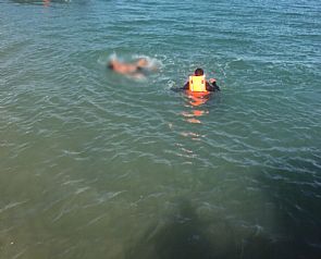 ورفض ان يساعده رجال الإنقاذ فتم التفاوض معه من قبل رجال خفر السواحل ورجال الإنقاذ ،ثم تم سحبه الى الشاطئ وتسليمه الى رجال الأمن المتواجدين لمعرفة أسباب الواقعة وملابساتها.
