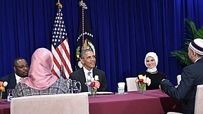وعقد أوباما الذي زار عدة مساجد خارج الولايات المتحدة اجتماعا خاصا مع مجموعة صغيرة من قيادات المسلمين قبل أن يدلي بتصريحات في المسجد.