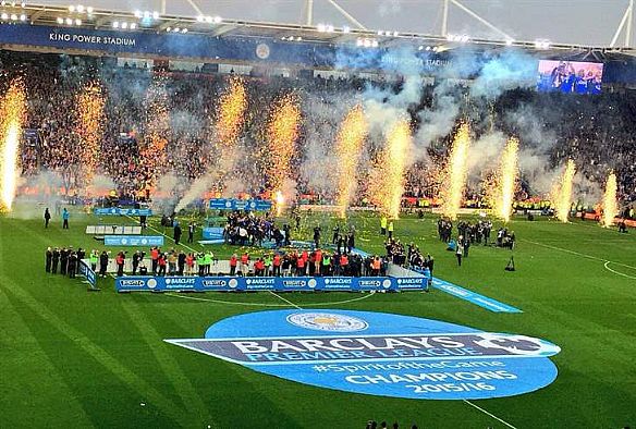 احتفل البطل المتوج بمسابقة الدوري الإنجليزي الممتاز نادي ليستر سيتي بانتصاره التاريخي للمرة الأولى وسط احتفالات غير مسبوقه في قلب ملعب ' ووكرز ستديوم'.