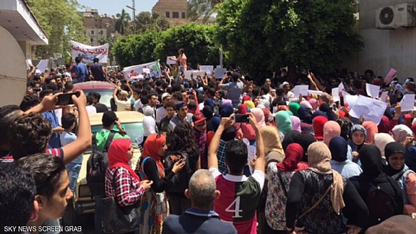وطالب المتظاهرون بإقالة وزير التربية والتعليم الهلالي الشربيني، بسبب عدم قدرته على احتواء الأزمة.