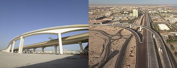 والجدير بالذكر ان مشروعي تطوير طريق الجهراء وشارع جمال عبد الناصر يعدان من أضخم مشاريع الطرق متعددة الأدوار على الصعيد الدولي وأحدى أهم وأضخم المشاريع التي تقع ضمن خطة تطوير البنية التحتية في الكويت، حيث يضم مشروع تطوير طريق الجهراء إنشاء 17.7 كم من الجسور بطريقة القطع المسبقة الصب تشمل 4 جسور رئيسية بالاتجاهين ( الجهراء – المستشفيات – الغزالي – المطار )، بالإضافة الى 8 جسور علوية اتجاه واحد و12 منحدر صعود وهبوط، بينما يقوم مشروع جمال عبد الناصر على تحويل الشارع القائم الى طريق سريع متعدد الأدوار يمتد بطول إجمالي يصل إلى 15كم بين دوار بوابة الجهراء ( دوار الشيراتون) وحتى شرق منطقة غرناطة شمال العاصمة، والذي يتألف من طريق رئيسي علوي بطول 8.6 كم على امتداد شارع جمال عبد الناصر، يتخلله 3 تقاطعات تتألف كل منها من طبقتين إلى ثلاث طبقات، مع 10 كم من منحدرات الدخول والخروج،