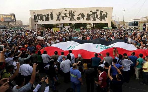وخرج المتظاهرون إلى ساحة التحرير رغم تحذير قيادة العمليات المشتركة، الخميس، من عدم إصدار تصريح بتنظيم التظاهرة التي دعا إليها الزعيم السياسي مقتدى الصدر، وقالت إنها ستعتبر أي شخص يشارك في التجمع وهو مسلح 'تهديدا إرهابيا'.