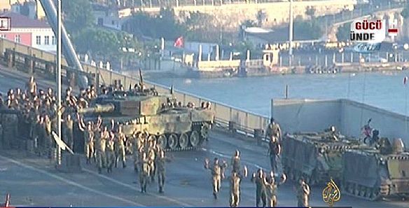 واقتحم عسكريون انقلابيون الليلة الماضية التلفزيون الرسمي التركي (تي.آر.تي) وأجبروا مذيعة تلفزيونية على قراءة بيان أعلنوا فيه باسم قيادة أركان الجيش استلام السلطة عبر 'مجلس سلام' وفرض الأحكام العرفية وحظر التجوال.