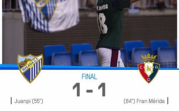 تمكن فريق أوساسونا الإسباني لكرة القدم من خطف تعادل ثمين بطعم الفوز من أنياب مضيفه فريق مالاجا، في أولى مباريات الدوري الإسباني (ليجا)، التي أقيمت اليوم على استاد لا روساليدا وانتهت بنتيجة 1-1.