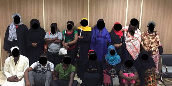 وأوضحت أن معلومات وردت إلى الإدارة العامة لمباحث شؤون الإقامة تفيد بوجود مكتب وهمي للعمالة المنزلية وبعد إجراء التحريات ثبت صحة هذه المعلومات مما استدعى توجه رجال الإدارة لضبط العاملين به بعد اتخاذ الإجراءات القانونية اللازمة حيث تبين أن المكتب يقوم بإيواء العاملات المتغيبات ومخالفي قانون الإقامة وضبط فيه 5 من الجنسية الآثيوبية و 5 من الجنسية الكاميرونية و3 من الجنسية الغانية و3 من جنسية بينين وكانوا جميعا بلا إثبات كما تبين أن 6 منهم مسجل بحقهم بلاغات تغيب من كفلائهم.