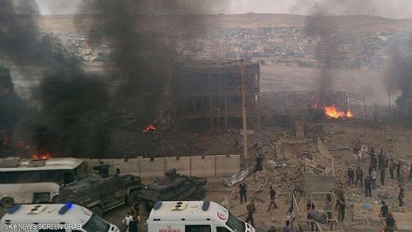 سقط 'عدد كبير' من القتلى والمصابين، جراء انفجار استهدف نقطة تفتيش تابعة للشرطة في بلدة الجزيرة، جنوب شرقي تركيا، الجمعة، حسبما أفادت مصادر أمنية. وفي حصيلة أولية، قالت مصادر بمستشفى قريب إن الانفجار أدى إلى مقتل 11 شخص من بينهم شرطيين ، وإصابة 78 آخرين. وتفيد الصور الأولى التي حصلت عليها 'سكاي نيوز عربية' انهيار مبنى كبير واحد على الأقل جراء الانفجار، فيما تضرر عدد من المباني القريبة. وعرضت قناة 'إن.تي.في' لقطات لأعمدة كبيرة من الدخان تتصاعد من الموقع، وسيارات إسعاف تسرع إلى المكان. وتقع بلدة الجزيرة في إقليم شرناق قرب الحدود مع سوريا والعراق، وأغلب سكانه من الأكراد.