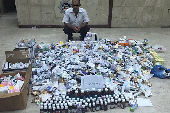 داهم امن الفروانية مساء اليوم الجمعة غرفة اسيوي يعمل عامل نظافة بعد معلومات تفيد بامتهانه لمهنة الطب ، وضبط في الغرفة علي كميات ضخمة من الأدوية تستخدم في شتي انواع الأمراض .
