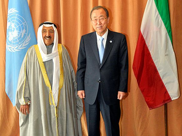 وقال بان كي مون في كلمته إن «الكويت أظهرت كرماً استثنائياً تحت قيادة سمو الأمير الشيخ صباح الأحمد الجابر الصباح ورغم صغر مساحة البلاد إلا أن قلبها كان أكبر من الأزمات والفقر والأوبئة».