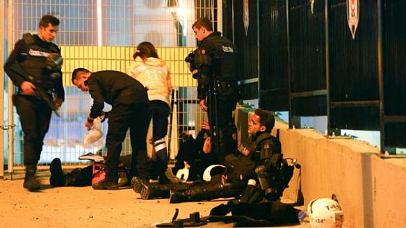 وقال مسؤولون أتراك إن تفجيرا بسيارة مفخخة وعبوة ناسفة استهدفا قوات الأمن قرب ملعب فريق بشيكطاش.