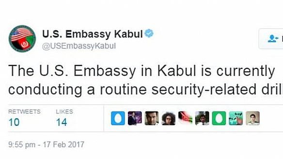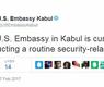 ونشرت السفارة تغريدة على صفحتها على موقع تويتر تقول فيها إن تدريبا متعلقا بالإجراءات الأمنية يجري حاليا في مقرها في كابول.