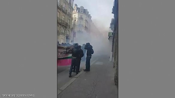 وهاجمت الشرطة المتظاهرين بغاز مسيل للدموع بعد أن بدأ بعض المتظاهرين برمي بعض المقذوفات على عناصر الشرطة.