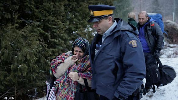 وتحدى مئات الأشخاص ولاسيما من أفريقيا والشرق الأوسط ظروف الشتاء وساروا عبر الحدود ساعين للجوء.
