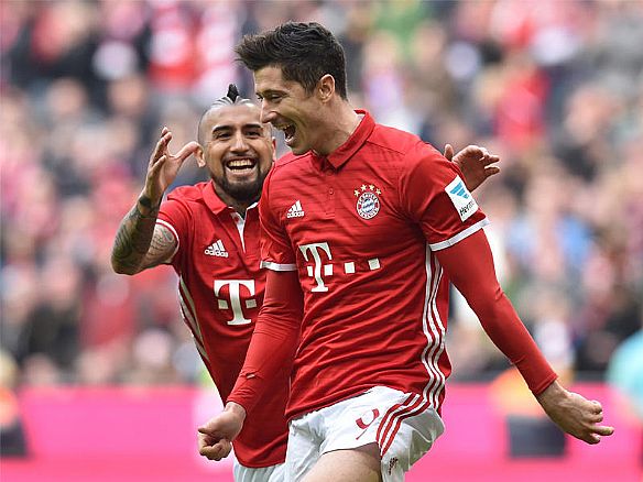 واصبح ليفاندوفسكي على بعد هدف من رصيد الغابوني بيار ايمريك أوباميانغ (دورتموند) متصدر هدافي الدوري (22).