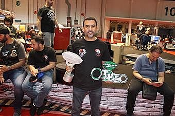 واوضح انه تم اختياره من قبل اللجنة المنظمة لهذا المعرض للمشاركة في مسابقة أفضل تصميم وتصنيع للدراجة النارية والتي نافسه فيها مصمم بريطاني شرط ان يتم تجميعها وتشغيلها في المعرض.