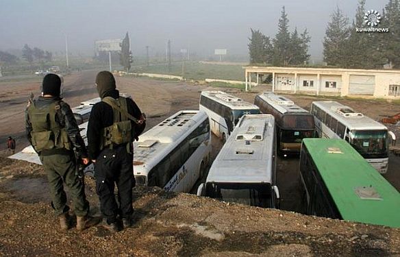 توقف أكثر من ثلاثة آلاف شخص، بعضهم منذ 24 ساعة، في منطقتين قريبتين من مدينة حلب في شمال سورية، في انتظار إكمال طريقهم الى وجهاتهم النهائية بعد إجلائهم من بلدات محاصرة، وفق ما أفاد المرصد السوري لحقوق الإنسان اليوم. وتم أمس إجلاء ثلاثة آلاف شخص بينهم 700 مقاتل موالون لقوات النظام من بلدتي الفوعة وكفريا، فيما خرج 300 شخص غالبيتهم من مقاتلي الفصائل المعارضة من بلدات الزبداني وسرغايا والجبل الشرقي في ريف دمشق. وبعد نحو 24 ساعة على وصولها الى منطقة الراشدين التي تسيطر عليها الفصائل المعارضة، لا تزال 45 حافلة تقل أهالي الفوعة وكفريا تنتظر إكمال طريقها الى مدينة حلب، فيما تنتظر 11 حافلة آتية من ريف دمشق منذ نحو 12 ساعة في منطقة الراموسة الواقعة تحت سيطرة قوات النظام لتتوجه الى محافظة إدلب، أبرز معاقل الفصائل المعارضة. وأوضح المرصد السوري أن «تحرك القافلتين مرهون بعملية الإفراج عن معتقلين في سجون قوات النظام»، بموجب الاتفاق بين الحكومة السورية والفصائل المعارضة. وأضاف إن «القافلتين لن تتحركا إلا بعد الإفراج عن 750 معتقلاً ومعتقلة في سجون النظام ووصولهم الى مناطق سيطرة المعارضة».