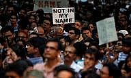 وتحمل ممثلون وكتاب وأمهات شابات يحملن أطفالهن الرضع الأمطار الموسمية وهم يحملون لافتات مكتوب عليها 'ليس باسمي' و 'أوقفوا إرهاب الأبقار' في مومباي وكولكاتا ومدن أخرى بينما انضم إلى مجموعة من المفكرين والنشطاء في دلهي أقارب ضحايا عمليات قتل خارج نطاق القانون.