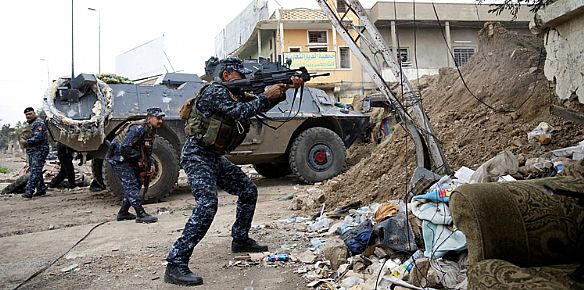 اعلن قائد الشرطة الاتحادية العراقية الفريق رائد جودت اليوم الجمعة قتل 54 من مسلحي ما يسمى تنظيم الدولة الاسلامية (داعش) في نهايات عمليات تحرير الموصل التي بدأت منذ نحو تسعة اشهر. وقال جودت في بيان ان قوات الشرطة الاتحادية قتلت 54 ارهابيا ودمرت 7 مركبات ومركزا للاتصالات ومعملا للتفخيخ وفككت 15 حزاما ناسفا وعثرت على 40 صاروخا و24 عبوة ناسفة. واضاف ان وحدات من الشرطة الاتحادية استكملت سيطرتها الكاملة على كنيسة الساعة ومسجدين ومنطقتي جنوب السرجخانة وكراج السرجخانة فيما تواصل قوات الرد السريع تطهير المستشفى الجمهوري ومستشفى البتول ومبنى القاصرين ودار الايتام ومبنى الطوارئ ومبنى طب الاسنان ودار الاطباء في حي الشفاء من مخلفات عناصر (داعش). واوضح جودت ان قوات الشرطة الاتحادية تواصل تضييق الخناق على الجماعات الارهابية في المحور الجنوبي من المدينة القديمة وتستعيد السيطرة على محطة وقود الجمهورية في باب لكش وجامع كعب بن مالك في باب جديد وتحرز تقدما نحو أهدافها المتبقية على ثلاثة محاور وسط تشتت عناصر التنظيم. من جهته اكد قائد قوات مكافحة الارهاب عبدالغني الاسدي في تصريح صحفي ان مسلحي (داعش) لم يتبق لهم ملاذ آمن في الجانب الايمن من الموصل بعد ان تمت محاصرتهم من ثلاث جهات. واعلنت القوات العراقية يوم امس الخميس السيطرة على جامع النوري بالجانب الايمن من الموصل. وفي هذه الاثناء تخوض القوات العراقية آخر فصول معركة استعادة السيطرة على مدينة الموصل التي تعتبر المعقل الرئيسي لتنظيم (داعش) في العراق منذ منتصف عام 2014. وتعد الموصل ثاني اكبر مدينة من حيث عدد السكان وكان يقطنها نحو مليوني شخص قبل سقوطها في قبضة التنظيم. وبدأت القوات العراقية هجومها على الموصل بدعم من التحالف الدولي قبل نحو تسعة اشهر لطرد مسلحي داعش من المدينة. وانتزعت القوات العراقية السيطرة على الشطر الشرقي من الموصل في يناير الماضي بعد مئة يوم من القتال وبدأت مهاجمة الشطر الغربي في الشهر التالي.