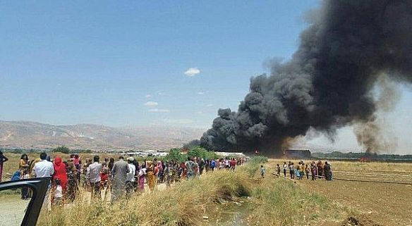 حريق هائل في مخيم للاجئين السوريين بلبنان