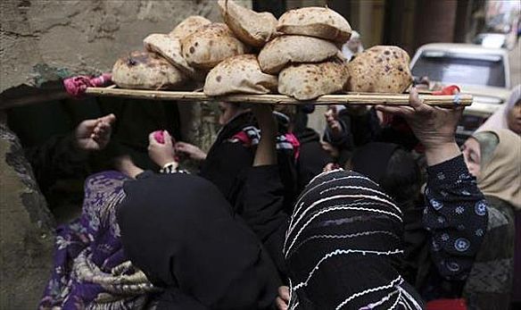 ويواجه المصريون الذين يعصف بهم التقشف تضخما فوق الثلاثين في المئة مما يلجئهم على نحو متزايد إلى الخبز الحكومي المدعم الرخيص لتلبية المتطلبات الأساسية مما يزيد فاتورة دعم الغذاء وواردات البلاد من القمح. وفي السنة المالية المنتهية في 30 يونيو بلغت واردات القمح 5.58 ملايين طن ارتفاعا من 4.4 ملايين طن في السنة السابقة.