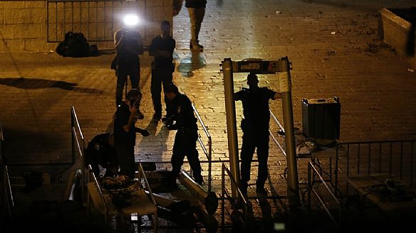 أعلنت الحكومة الأمنية الإسرائيلية فجر الثلاثاء أنها قررت وقف استخدام أجهزة كشف المعادن عند مداخل المسجد الأقصى في القدس الشرقية المحتلة، وذلك بعدما تسببت هذه البوابات الإلكترونية باندلاع أعمال عنف دامية بين الفلسطينيين والقوات الإسرائيلية.