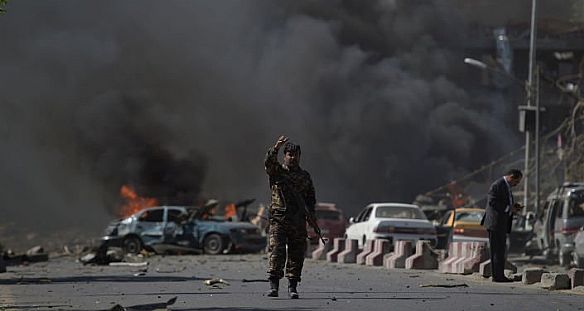 وقال مسؤولون أفغان إن انتحارياً توجه إلى فرع لبنك كابول في منطقة ماكرورايان وفجر العبوات الناسفة التي بحوزته.