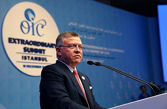 وحذر الملك الأردني من أن 'عدم وجود حل عادل للقضية الفلسطينية يهدد بانتشار التطرف'، مضيفا أنه 'لا يمكن أن تنعم منطقتنا بالسلام الشامل إلا بحل للصراع على أساس حل الدولتين'.