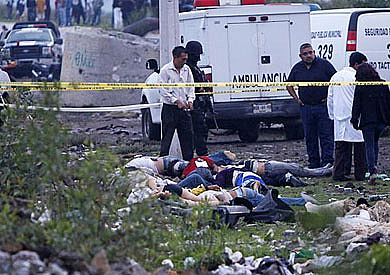 وأوضح ميغول أنخيل يونيس حاكم الولاية في مؤتمر صحفي أن معظم القتلى يعتقد أنهم أعضاء في عصابات مخدرات، مشيرا إلى وجود وشوم على جثثهم.